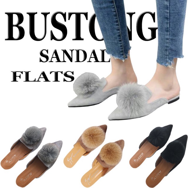 ESTORE Flat Shoes Bustong Pom Pom FS08 Pompom Bulu . Sumber Gambar : shopee.co.id