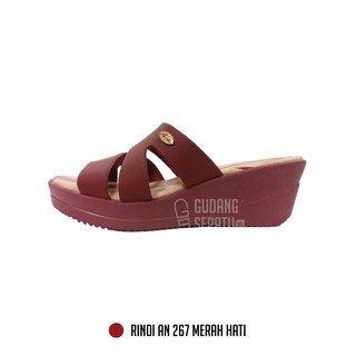 Sandal Wedges Wanita Cewek Rindi AN 267 KAMEL MERAH HATI . Sumber Gambar : shopee.co.id