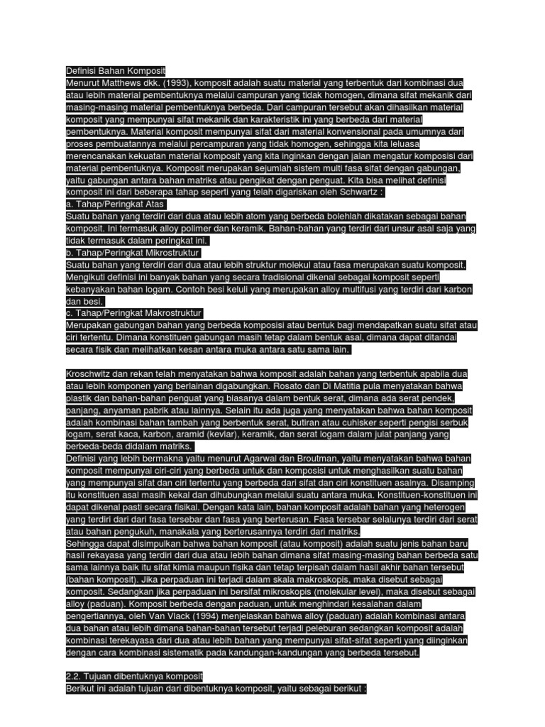 Definisi Bahan Komposit Sumber : www.scribd.com